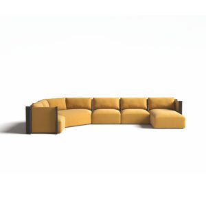 A definire il carattere del progetto è il ritmo degli elementi verticali in legno che percorrono schienali e braccioli: un colonnato misurato e silenzioso che incornicia i moduli imbottiti, bilanciando struttura e morbidezza. Non un dettaglio decorativo, ma il gesto generatore dell’intero sistema — capace di creare ordine visivo, profondità materica e una presenza che si modifica con la luce nel corso della giornata. Per gli ambienti indoor, questa struttura è realizzata in legno di frassino, scelto per la venatura elegante e la capacità di trasmettere calore e solidità. Nella versione outdoor, laCividina introduce il legno di iroko, naturalmente resistente agli agenti atmosferici e proposto con un intreccio che aggiunge profondità materica e richiama una tradizione artigianale reinterpretata in chiave contemporanea.
