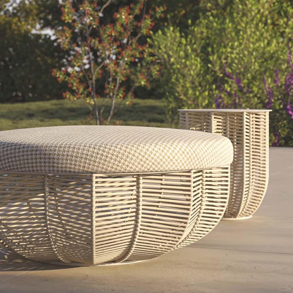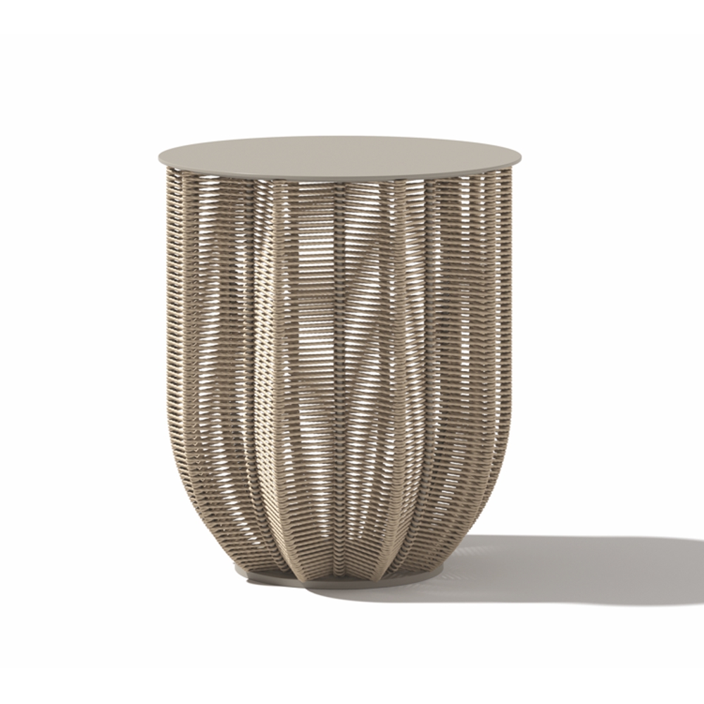 Palme nasce da un racconto di territorio e memoria. Il progetto prende ispirazione dalla pianta stellata della città di Palmanova, straordinario esempio di città ideale rinascimentale dove rigore geometrico e armonia formale convivono. Da questa geometria nasce una struttura tridimensionale che richiama le nove punte della stella, attorno alla quale si sviluppa un intreccio di corda naturale. Il risultato è una collezione che unisce memoria artigianale e linguaggio contemporaneo.
